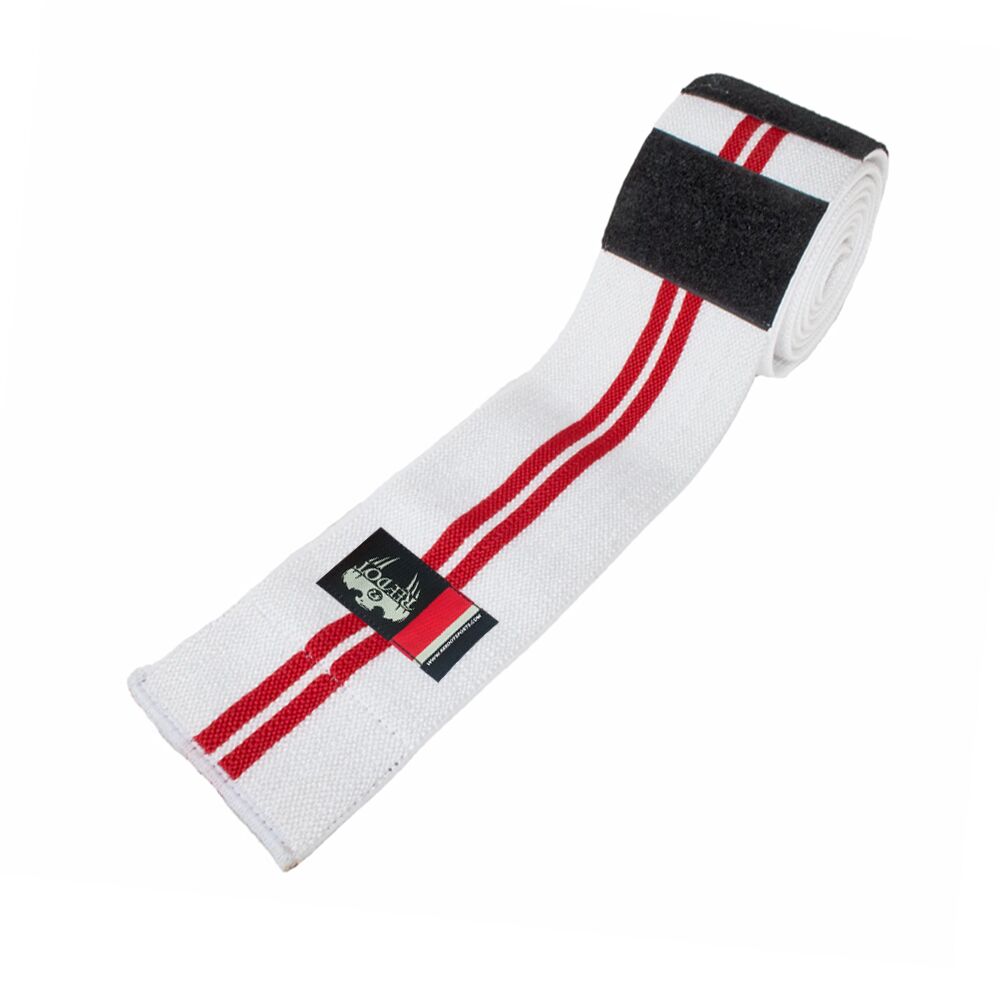 - So basically, take the knee wrap and wrap it around your leg, right below your knee. Then, wrap it around your knee joint a few times, making sure it’s snug but not too tight. Finally, wrap it around your leg again, above your knee joint, and then tie it off.