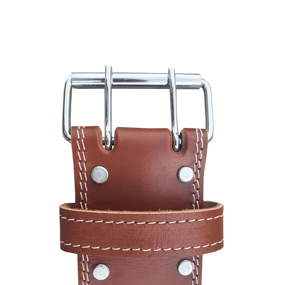Custom 10mm double prong double needle stitched 5mm two layer leather belt.