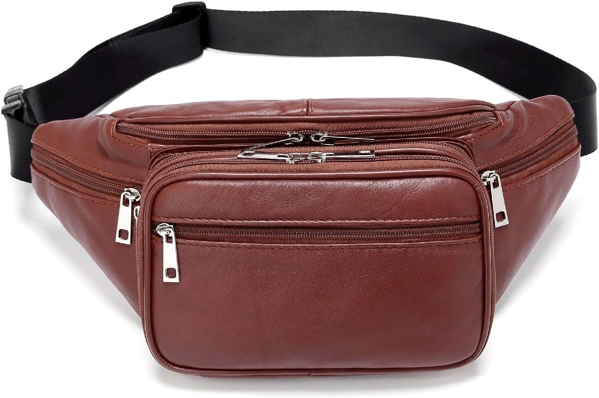 This leather waist pack/fanny pack is made with high quality genuine leather. It comes with seven zippered pockets, card slots, ID holder, and a key ring. Plastic click Buckle, Made with a soft natural leather. A fanny pack perfect for carry the essentials.